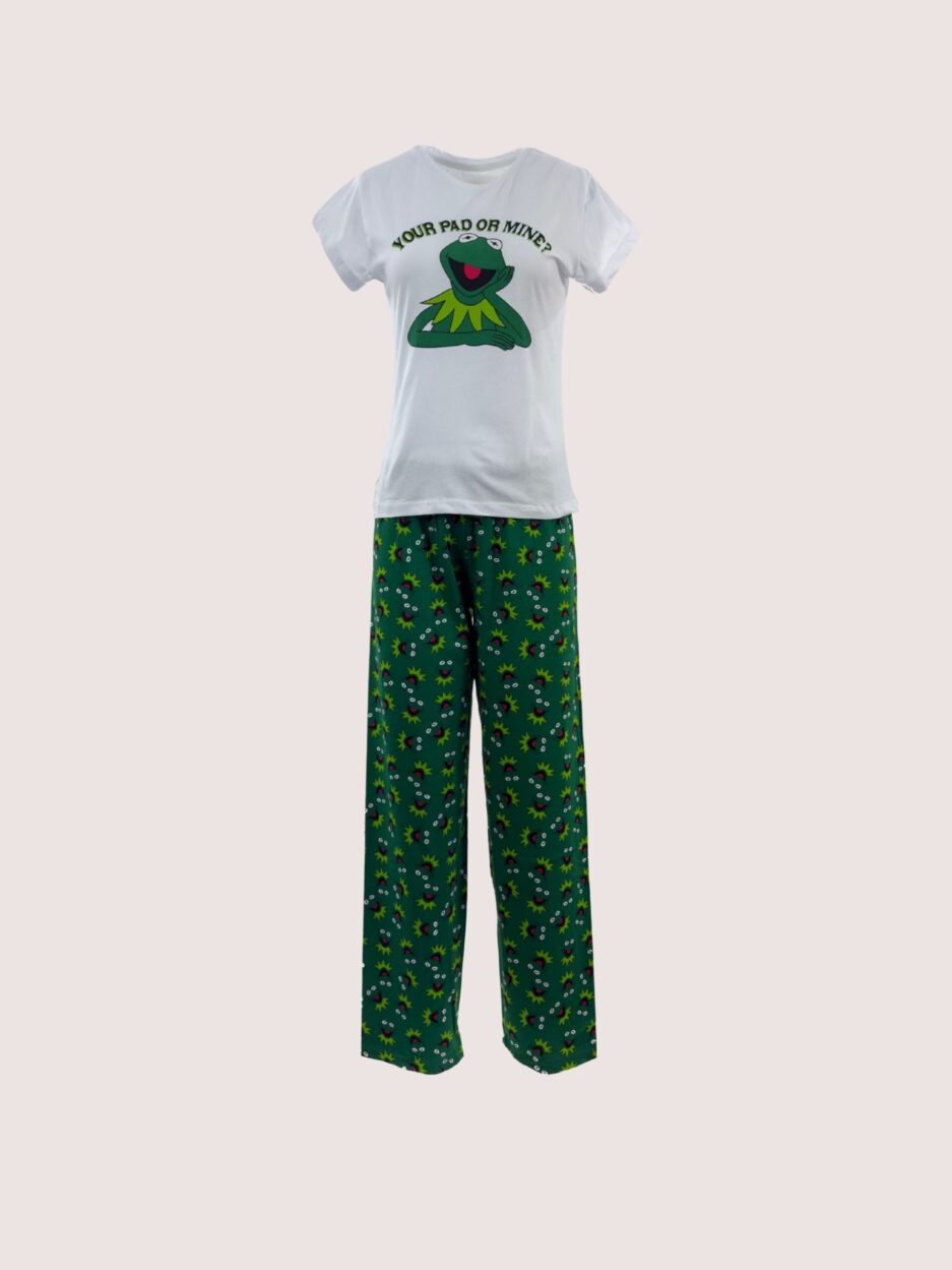 Renkli ve eğlenceli bir seçim olan bu pijama takımı, canlı kurbağa baskılarıyla dikkat çeker. Konforlu kumaşı ve rahat kesimiyle gece boyunca rahat bir uyku sağlar. Evde dinlenirken stilinizden ödün vermek istemeyenler için mükemmel bir tercih.