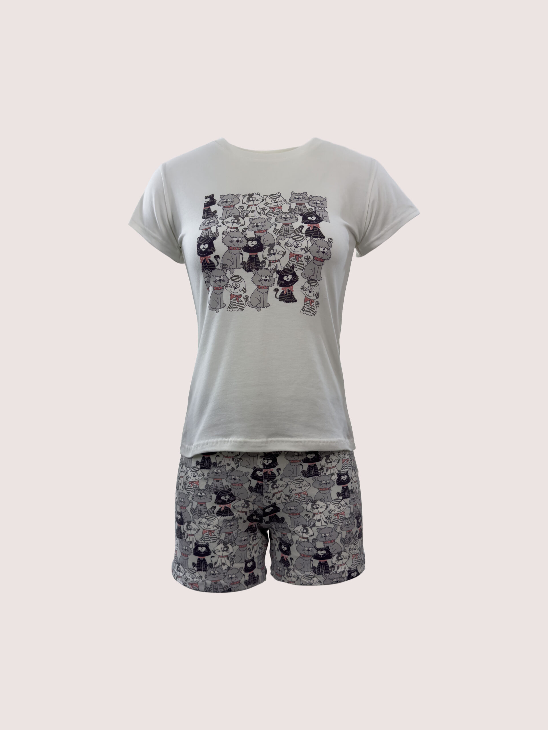 7631 KARİKATÜR KEDİ BASKILI TSHIRT ŞORTLU TAKIM